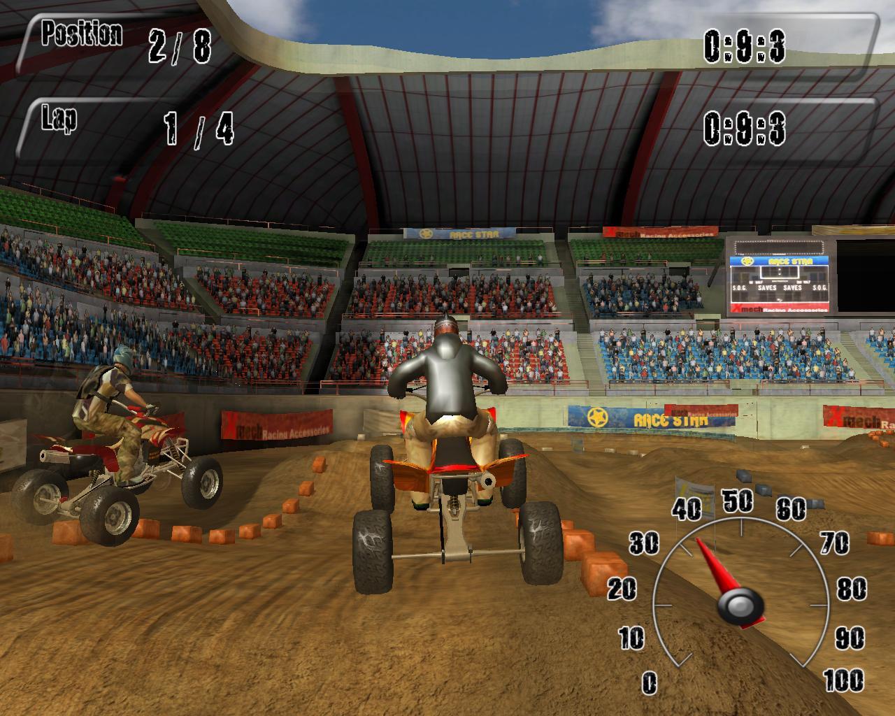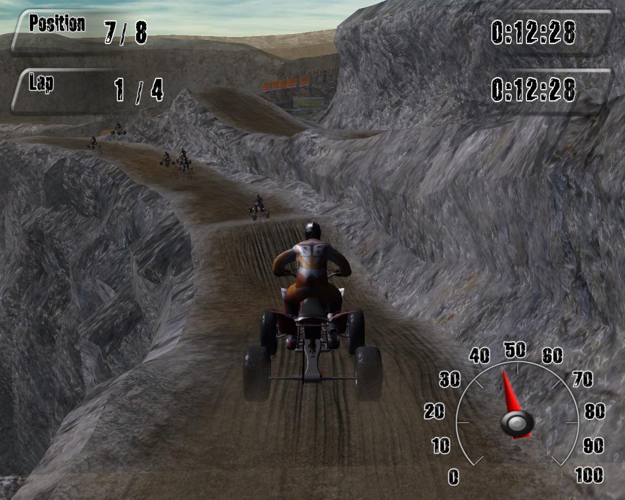 ATV GP is a wild racing game featuring an overwhelming sense of speed. Smooth gameplay, outstanding audio and visuals all designed to keep you on the edge of your seat throughout the whole experience. Game modes:- motocross GP, career mode (125cc, 250cc and open class) - hill-climbing - collision course Features quad tuning (categories: 125 cc, 250 cc, 450 cc, 600 cc) 12 tracks for GP mode 4 closed tracks for collision course 4 hill climb tracks customizable number of opponents (3-7)