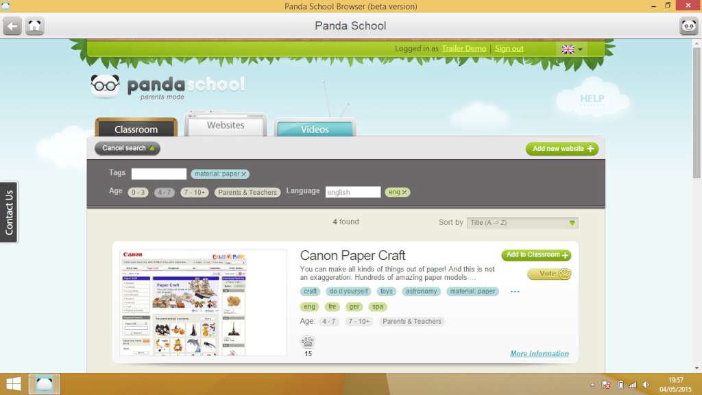 Panda School Browser Steam CD Key Platform: Steam Release Date: 22/05/2015 Product Description Panda School Browser is a browser for children which gives access strictly to a list of pre-approved websites and videos. Clicks on banners or other external links are simply ignored. The browser is developed especially for children, so it is very easy to use and encourages them to explore and study. The collection of content is provided by «Panda School» web service which is free to use for everyone. You can take a look at the current collection here: http://pandaschool. org* The number of the websites and videos is constantly growing, as they can be easily added to collection by any member of community, at the same time content is strictly moderated by our staff. Second important feature of the browser is the ability to completely prevent access to any other application on your computer while running in the the «Kids Mode». Exit from the «Kids Mode» is protected by PIN. Parents are free to choose which resources they want to add to their own «Classroom» but there is also a default set of hand-picked resources which provide high quality educational games for children of any age. Panda School Browser is easy to start with - no additional configuration needed. Let your kids explore the internet on their own! Complete safety and lots of fun is guaranteed. P. S. Even our great application can hardly substitute parental involvement. Enjoy learning new things together with your child from time to time and you'll be truly amazed by the results. * Users from regions with censored internet access (e. g. Hong Kong) may use the website to check access to various resources System Requirements OS: Windows 7+ Processor: 1 GHz Memory: 1 GB RAM Storage: 140 MB available space